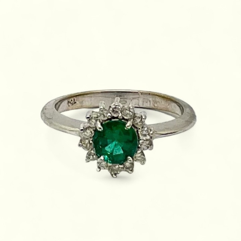 ONE EMERELD 0.35 CARATS AND TEN SI/G VS DIAMONDS 0.046 CARATS SET IN A 14K YELLOW GOLD RING