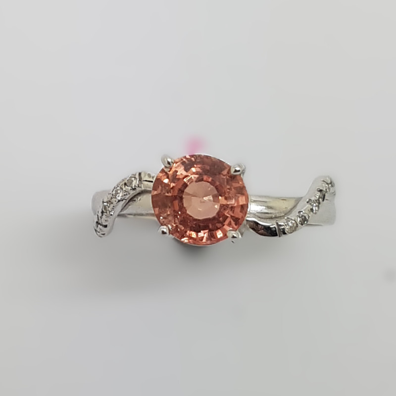 ONE UNHEATED PEACH SAPPHIER 4.04 CARATS, SIX MARQUEDIAMONDS 0.170 CARATS AND EIGHT SI/G DIAMONDS 0.140 CARATS SET IN A 18K YELLOW GOLD RING